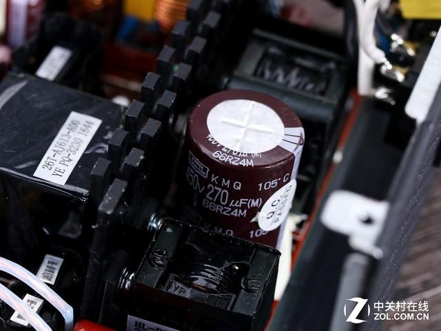 電源的EMI電路齊備,二級EMI和主動式PFC電路都有完備的元件,主電容為黑金剛的270微法電容,用來滿足高效的輸出并且能夠保證電源的穩(wěn)定運行。