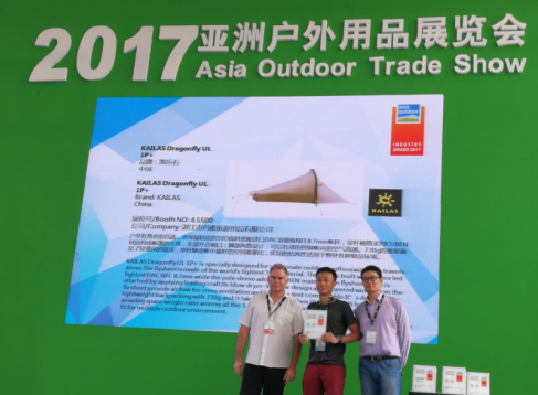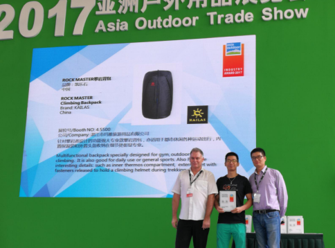 當(dāng)天下午,第八屆亞洲戶外產(chǎn)業(yè)大獎(jiǎng)?lì)C獎(jiǎng)典禮在2017亞洲戶外展現(xiàn)場(chǎng)成功召開(kāi)。亞洲戶外產(chǎn)業(yè)大獎(jiǎng)是由亞洲戶外展面向戶外優(yōu)秀產(chǎn)品招募,并權(quán)威發(fā)布的年度重磅獎(jiǎng)項(xiàng),2017年共27件優(yōu)秀的產(chǎn)品參加評(píng)選亞洲戶外產(chǎn)業(yè)大獎(jiǎng),其中 KAILAS凱樂(lè)石品牌的三件專業(yè)產(chǎn)品(Rock Master 38L攀巖背包、Airo超輕攀登頭盔、Dragonfly UL 1P+蜻蜓UL野營(yíng)帳)在眾多參選產(chǎn)品中脫穎而出,一舉斬獲三項(xiàng)大獎(jiǎng)。