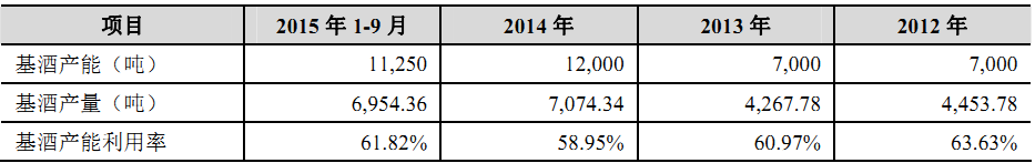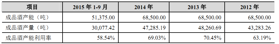 不過,比較有意思的是,2012年--2014年及2015年1-9月,西鳳酒的產(chǎn)能利用率一直徘徊在60%左右。上述期間,西鳳酒的成品酒的產(chǎn)能利用率也只有70%,2015年1-9月,更是下降至58.54%,不足60%。盡管如此,西鳳酒仍在招股書中公開宣稱,公司產(chǎn)能不能滿足優(yōu)質(zhì)基酒的生產(chǎn)需求,存在鳳香型優(yōu)質(zhì)基酒產(chǎn)能不足的劣勢。