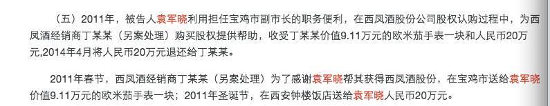 西鳳酒招股書中股東排名第22位的郝海錄和排名第23位的丁濟民通過向袁軍曉行賄的方式,借袁軍曉之口給時任寶雞市國資委原主任和西鳳酒原董事長打招呼關(guān)照其二人對西鳳酒的股權(quán)認購。2010年6月前后,郝海錄和丁濟民認購成功,分別得到西鳳酒240萬股和92萬股,并一直持有至今。