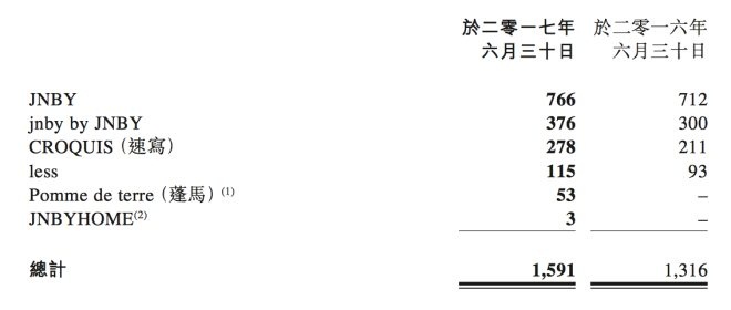 據(jù)其剛公布的2017財(cái)年報(bào)告顯示,截止2017年6月30日,江南布衣在全球經(jīng)營(yíng)的實(shí)體零售店總數(shù)由2016年6月30日的1316家,增加至1591家。零售網(wǎng)絡(luò)已覆蓋中國(guó)內(nèi)地所有省、自治區(qū)和直轄市及全球其他17個(gè)國(guó)家和地區(qū)。