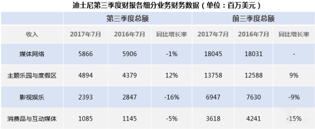 但從迪士尼2016的財(cái)報(bào)來看,合作結(jié)果似乎并不樂觀,2016財(cái)年,媒體網(wǎng)絡(luò)營收236.89億美元,在總營收中占比42.6%;而2015年的媒體網(wǎng)絡(luò)營收為232.64億美元,占比44.3%,總營收貢獻(xiàn)率下滑1.7%。當(dāng)然,ESPN作為曾經(jīng)的收入大頭,現(xiàn)如今已變成“大坑”,因?yàn)槠渚揞~版權(quán)費(fèi),也對(duì)總收入產(chǎn)生了較大影響。