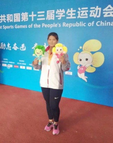 李飛,14級新聞與傳播學院本科生,9月11日,以16.19米的成績獲得女子甲組鉛球第一名。