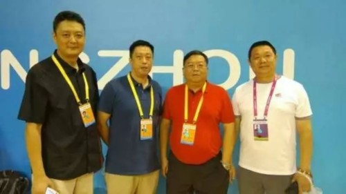 丁思劼、張澤鋮與體教部李寧主任及教練車磊老師合影