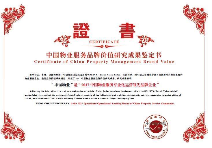 大會(huì)發(fā)布了2017中國(guó)房地產(chǎn)品牌價(jià)值研究最新成果以及2017年中國(guó)房地產(chǎn)優(yōu)秀品牌企業(yè)名單。豐誠(chéng)物業(yè)擁有高端的港式“紫荊花尊享”服務(wù)品牌,秉承“比你更懂你”的服務(wù)理念成為業(yè)內(nèi)優(yōu)質(zhì)物業(yè)服務(wù)標(biāo)桿企業(yè),并獲得“ 2017中國(guó)物業(yè)服務(wù)專業(yè)化運(yùn)營(yíng)領(lǐng)先品牌企業(yè) ”的殊榮。