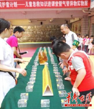 氣管食道異物:花生米高居首位 “口哨、彈珠、硬幣,還有筆蓋子……這么多東西都是從喉嚨里取出來的嗎,真是神奇!”在急救技能進(jìn)課堂活動現(xiàn)場,還同期展出了154件氣管、46件食道異物實(shí)物標(biāo)本,并現(xiàn)場為孩子們傳授氣管異物急救方法。 據(jù)湖南省兒童醫(yī)院耳鼻咽喉-頭頸外科統(tǒng)計(jì),2003年1月1日至2015年12月31日,湖南省兒童醫(yī)院耳鼻喉科病房收治呼吸道異物患兒達(dá)8023例,而2016年1月1日至5月30日期間就收治311名。8023例異物患兒中卡入植物類的4903例、動物類1280例、金屬類720例、化學(xué)類704例。醫(yī)院副院長、耳鼻喉科專家趙斯君教授介紹,這些卡在孩子氣管里的異物中,花生、瓜子、豆類及帶殼食物約占2/3,花生米高居首位,占40%以上,排在第二的是瓜子,第三是豆類。從年齡分布上來看,年齡最小的只有1個月(卡玉米糖),最大的12歲,集中發(fā)生在3歲以下兒童,男孩占2/3。其他特殊的如螺絲釘、帶珠鋼針、竹簽、金屬環(huán)、狗尾巴草、五角星、口哨、塑料貼圖、魚鉤、發(fā)夾、蒼耳球、拉鏈、長命鎖、生物試驗(yàn)針也時(shí)有發(fā)生,學(xué)齡兒童所卡氣管異物以圓珠筆帽、口哨多見。