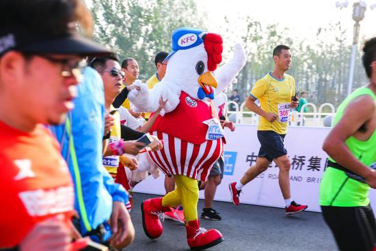 隨著一聲發(fā)令槍響,由大名鼎鼎的肯德基吉祥物“奇奇”領銜的K-Run百人跑團,與上萬名參賽選手一起從各級比賽的起跑點出發(fā),投入到“盡情自在”的馬拉松比賽中去。他們堅持不懈地奮力奔跑,生動詮釋了馬拉松比賽挑戰(zhàn)極限的運動精神,而他們身著的紅白相間的K字“戰(zhàn)袍”,也為比賽現(xiàn)場增加了一抹亮色。