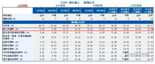 2017年4月26日,都市麗人公布2016年年報,業(yè)績進一步下滑,摘要如下: (1)收入同比減少8.9%、但凈利潤卻遭遇到腰斬,只有2.41億人民幣,即是下半年只賺6千7百萬人民幣,上下半年比較,凈利潤持續(xù)下跌。 公司的解釋為: 2016年內(nèi)衣行業(yè)出現(xiàn)結(jié)構(gòu)性調(diào)整,微商崛起,導(dǎo)致公司經(jīng)營下滑。根據(jù)都市麗人所做的市場調(diào)研,目前微商零售份額大概占中國貼身衣物市場(包括女性內(nèi)衣)的10%左右,為都市麗人的3倍。 2016年上半年開始,無痕無鋼圈文胸需求大增,市面上的有鋼圈和無鋼圈內(nèi)衣比例,從原來的9:1,變成5:5。都市麗人卻因為缺乏具備生產(chǎn)無痕無鋼圈文胸的技術(shù)供貨商,加上代工商的產(chǎn)品供應(yīng)也受到微商影響,導(dǎo)致嚴(yán)重缺乏此類產(chǎn)品,大大影響了銷售。 (2)毛利率上升到44.4%(2015年:42.7%),提高的差距很微小,但也算是年報的一大亮點。 毛利率微升是可以這樣去理解,無痕無鋼圈文胸需求大增,即使都市麗人產(chǎn)品供應(yīng)有限,亦有助調(diào)整產(chǎn)品結(jié)構(gòu),平均價格提高。另一方面,公司為了維持品牌形象,并沒有對有鋼圈文胸產(chǎn)品減價促銷。因此,毛利率得以錄得輕微的升幅。但是這樣的話,卻令純利率付出了沉重的代價。