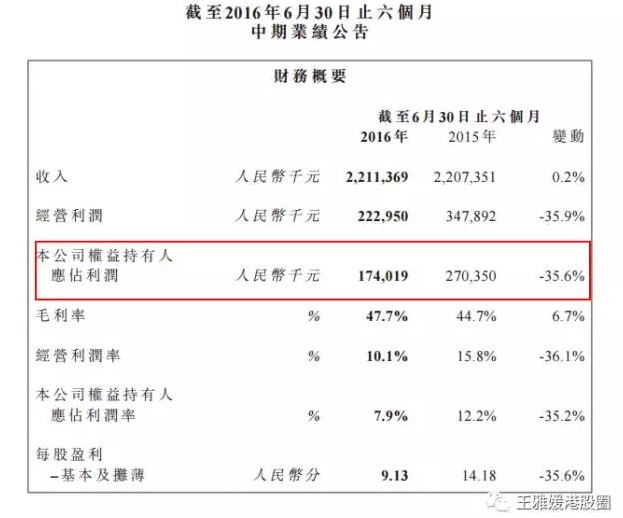 2016年上半年收入同比微升0.2%,但凈利潤大幅下挫35.6%,從2.7億人民幣跌至1.74億人民幣。