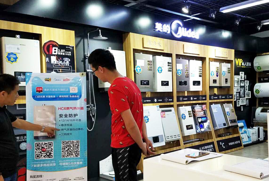 一名消費(fèi)者在美的專賣店了解天貓全渠道購(gòu)物
