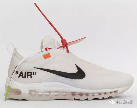十個設計利用了Abloh的刻板Helvetica文字,印在鞋子的外側是舌頭和臉頰文字閱讀“AIR”,這是指耐克航空技術,“FOAM”以及“SHOELACES”印刷在鞋帶上。