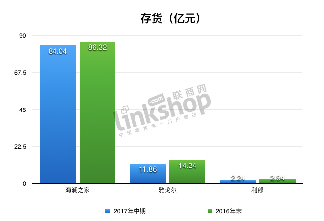 在存貨方面,海瀾之家因服裝體量相比較大,而總體大大高于雅戈爾和利郎;但對于品牌本身而言,該3者期內在庫存方面的管控都比較得當,相較于去年同期,都得到了一定程度的降低,這也就意味著其庫存壓力都在合理范圍內。