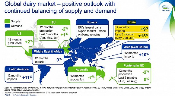 恒天然今天歸納的全球主要市場乳業(yè)供需狀況