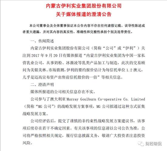 “媒體所報(bào)道的公司相關(guān)信息存在不實(shí)。”伊利股份方面專(zhuān)門(mén)發(fā)布了澄清公告,但同時(shí),伊利股份也確認(rèn)了另一條信息。