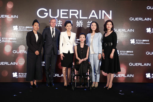 左起:天籽生物多樣性發(fā)展中心創(chuàng)始人李?果女士、法國嬌蘭總裁兼首席執(zhí)行官Laurent Boillot、天下女人國際論壇發(fā)起人楊瀾女士、劉巖文藝專項基金創(chuàng)辦人劉巖女士、紅傘計劃發(fā)起人樸婧女士、法國嬌蘭中國區(qū)總經(jīng)理戴艷婷女士