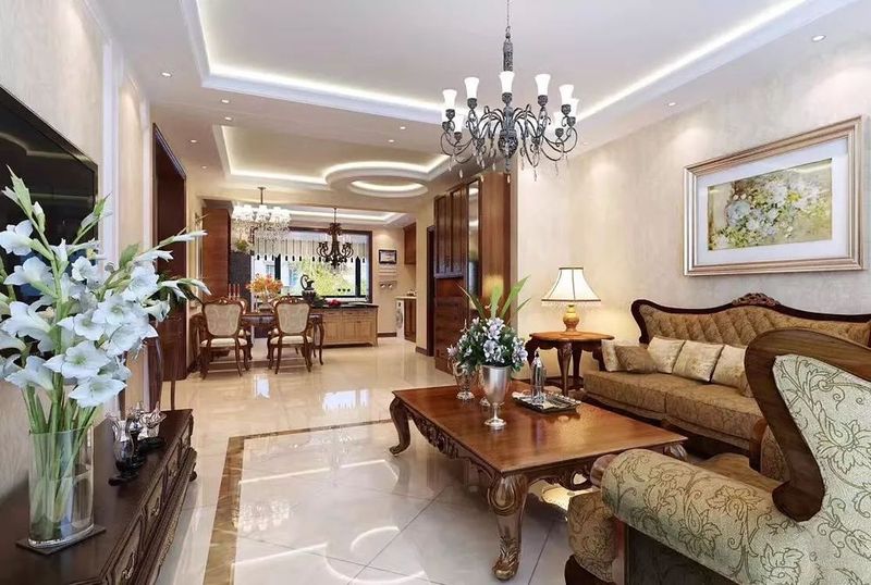 美式裝修大多采用實(shí)木家具,崇尚古典韻味。客廳的裝修采用裝飾畫(huà)以及搭配古典大吊燈,給人感覺(jué)是不僅豪華大氣,還擁有古典氣質(zhì)和浪漫氣息。