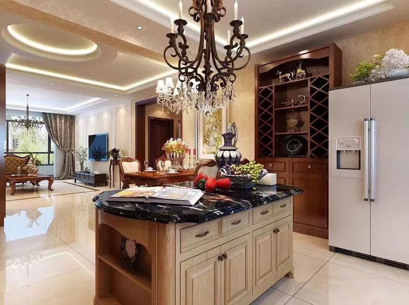 美式裝修的廚房中,也有常見(jiàn)的新古典風(fēng)格家具,這種風(fēng)格的家具,設(shè)計(jì)的重點(diǎn)是強(qiáng)調(diào)優(yōu)雅的雕刻和舒適的設(shè)計(jì)。