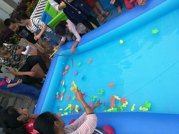 活動(dòng)現(xiàn)場還有親子釣魚區(qū),小朋友們圍坐一起,培養(yǎng)了小朋友的專注能力和細(xì)心能力,同時(shí)還可將“戰(zhàn)利品”帶回家,博得小業(yè)主的喜愛。