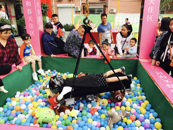 室外互動(dòng)區(qū),隆基泰和為大家準(zhǔn)備了真人抓娃娃機(jī)、超大海洋球體驗(yàn)區(qū)和親子釣魚島等大型互動(dòng)項(xiàng)目。活動(dòng)第一天就吸引了眾多市民前來。看著孩子在百平海洋球館內(nèi)快樂的玩耍,大家們都舉起手機(jī),用鏡頭抓拍這珍貴的幸福時(shí)刻。真人抓娃娃可謂是家庭齊作戰(zhàn),一人操控機(jī)器,一人進(jìn)入?yún)^(qū)域抓取獎(jiǎng)品,可謂互動(dòng)歡樂多,考驗(yàn)大家的心理素質(zhì)和精準(zhǔn)操作。“體驗(yàn)過很多次抓娃娃機(jī),還沒感受過這種形式的,直接自己去抓,比普通的娃娃機(jī)更有意思,更痛快”一位參與活動(dòng)的業(yè)主說。