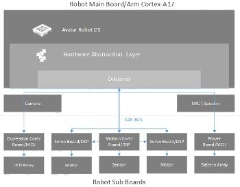 iPal在四核Cortex-A17 Rockchip RK3288上運行Android,功耗為1.8GHz,并擁有4GB內存和32GB閃存。 共有32個MCU以及多個DSP被安置在“子板”,分布在整個機器人中,以處理通過CAN接口連接的電機和傳感器控制。