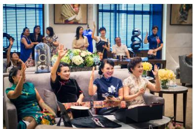 尊享品鑒會在悠悠琴聲中開始。海銀財(cái)富分析,茶香茗茗間,有50余年旗袍手藝的老工匠為每一位精心裝扮的嘉賓現(xiàn)場制作盤扣。在專業(yè)老師的指導(dǎo)下,每位嘉賓都挑選到了適合自己的珠寶與旗袍。經(jīng)過化妝師的妙手點(diǎn)綴,每一位嘉賓各自獨(dú)特的華貴氣質(zhì)都突顯出來了。