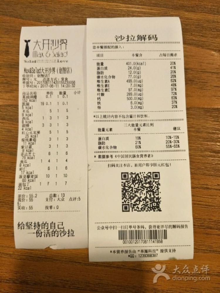 2015 年初,大開沙界在上海楊浦區(qū)開出第一家店的時候,CEO 肖羽還在懷疑消費者能否接受“把沙拉作為主食”,獲得菜品卡路里含量當(dāng)時也是很新的概念。 他們用籌碼對應(yīng)菜品,讓顧客自主搭配沙拉,在買單后顧客可以掃描小票上的二維碼獲知自己所點的沙拉卡路里、脂肪等數(shù)值。