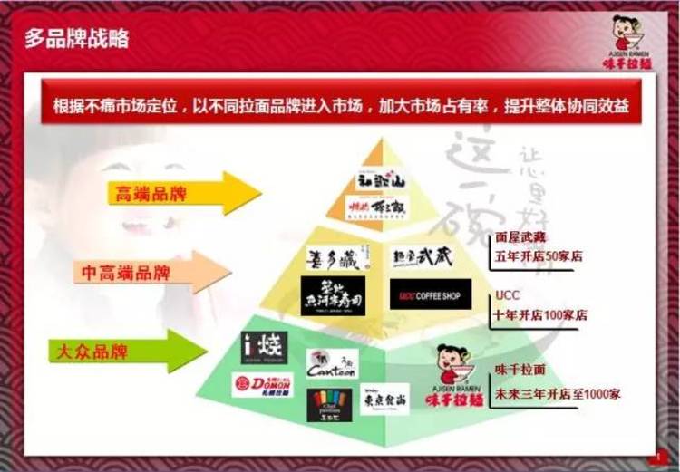 除此之外,味千還推出了包括和歌山、味牛、麻布十番、喜多藏、東京食尚等十幾個品牌,這些品牌被劃分為了不同的檔次,不過總體上都比味千的價格要高一些。