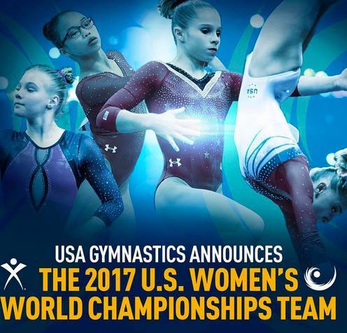 近日,美國體操女隊公布了2017年體操世錦賽名單,一位叫Morgan Hurd的16歲女孩入選,就是上圖中左二那個戴眼鏡的姑娘。她將和Ragan Smith出戰女子全能比賽。
