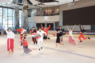 在萬象天地的冰場上,加拿大CHL明星冰球表演賽間隙,紅白配色的時裝、代表肯德基的\