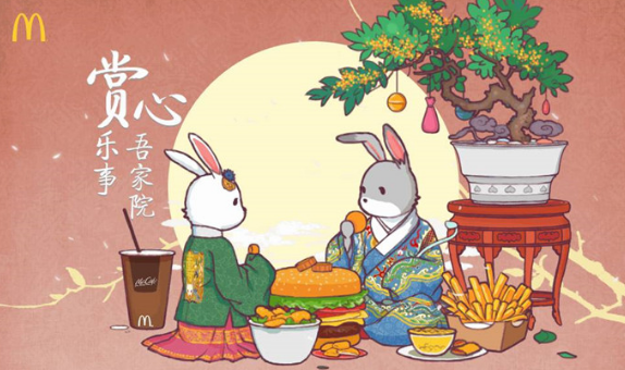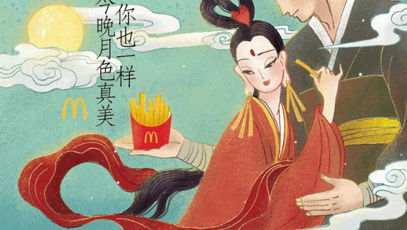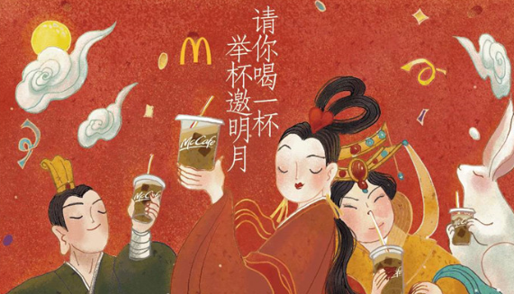 麥當(dāng)勞邀請(qǐng)了@葉露盈和@檀仁瓜豬 兩位插畫師操刀,這一次的中秋月,嫦娥從中國(guó)畫中飛了出來(lái)。