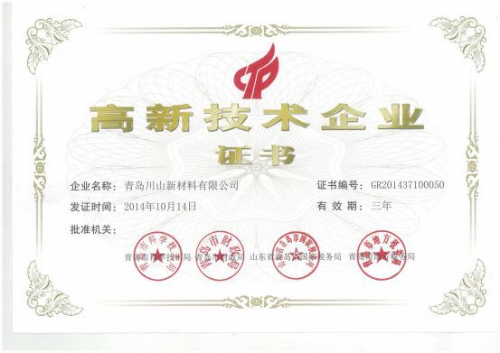 2014年川山新材料有限公司(川岳山硅藻泥)首次榮獲高新技術(shù)企業(yè)認定(有效期三年)