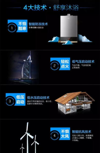 T2S熱水器采用99.9%無氧銅水箱,導(dǎo)熱快,省時(shí)又耐用。下鼓式變頻風(fēng)機(jī)的配備保證燃燒供氧充足,達(dá)到了環(huán)保的效果。同時(shí),雙電磁比例閥和藍(lán)火苗專利技術(shù)可保證燃?xì)饬康木_供應(yīng)和燃燒質(zhì)量。為抵抗冬季寒冷低溫,T2S融入智能防凍技術(shù),保證水流暢通;為應(yīng)對城市燃?xì)夤⿷?yīng)不穩(wěn)定的情況,引入低氣壓啟動(dòng)技術(shù),保證隨時(shí)可以正常運(yùn)轉(zhuǎn);而低水壓啟動(dòng)則可在供水不足的情況下讓沐浴用水源源不斷,輕松無憂;高層住宅風(fēng)速較大,智能抗風(fēng)不懼10級大風(fēng),沒有了倒灌現(xiàn)象,安全更進(jìn)一步。