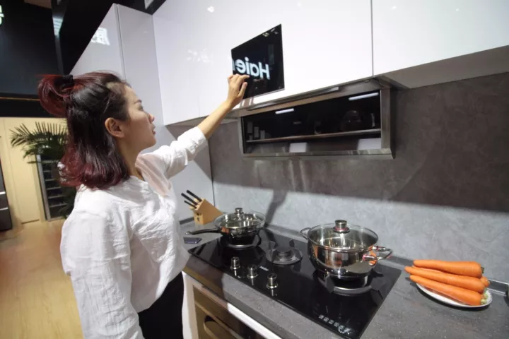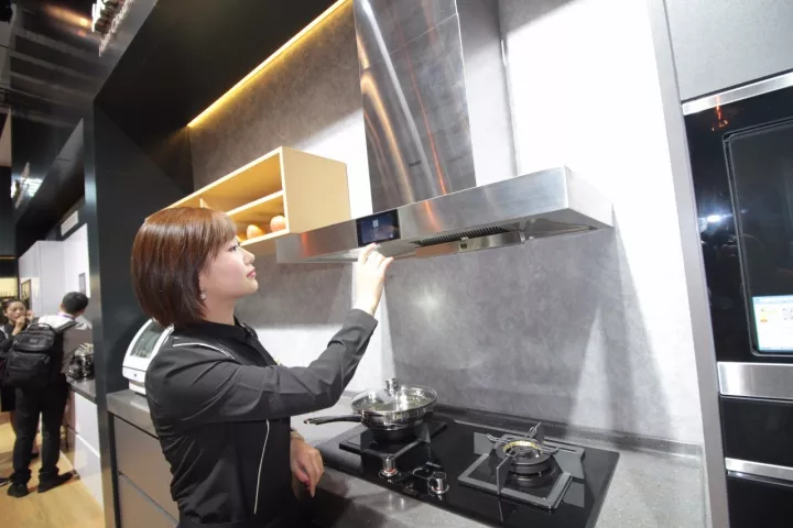 首次亮相的海爾全隱藏式油煙機(jī),采用350mm超薄機(jī)身設(shè)計(jì),整機(jī)高度650mm,完美嵌入櫥柜,與廚房融為一體,將一體式廚房裝入用戶家中。
