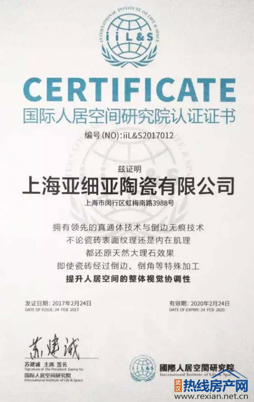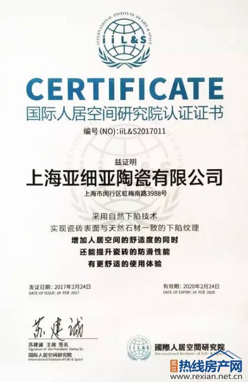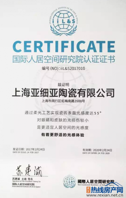 國際人居空間研究院是為貫徹實(shí)施綠色生態(tài)人居發(fā)展戰(zhàn)略應(yīng)運(yùn)而生的國際空間研究機(jī)構(gòu)。在本次會(huì)議上,研究院主席充分表達(dá)了對(duì)亞細(xì)亞為全球用戶締造舒適人居空間的理念的認(rèn)可和贊賞,針對(duì)亞細(xì)亞55°柔光、立體噴墨下陷、真通體、倒邊無痕四大行業(yè)領(lǐng)先工藝帶來的舒適體驗(yàn),頒發(fā)了三項(xiàng)認(rèn)證證書,認(rèn)可了亞細(xì)亞在人居空間研創(chuàng)上取得的卓越成就。