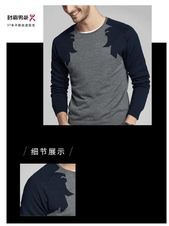 獅子野性背后的柔和與優(yōu)雅,如今成了一個內(nèi)斂的符號,鑲在勁霸的羊毛衫之上,大氣的獅頭花型插肩設(shè)計,重新定義屬于男性的時尚,搭配休閑褲或者牛仔褲,讓你出街自帶霸氣。