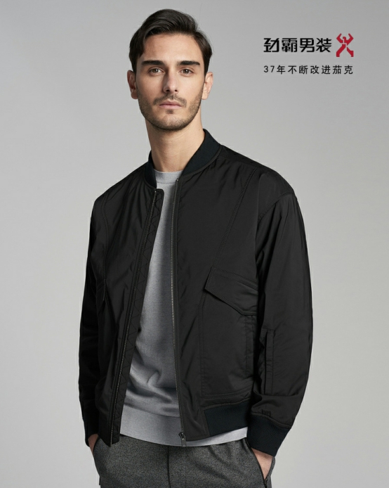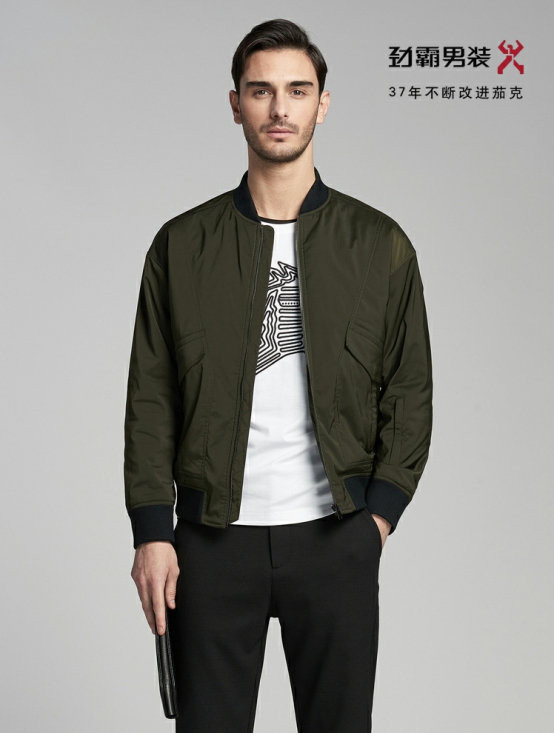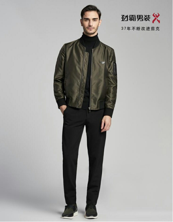 斜紋聚酯纖維面料茄克,手感細膩,光澤透亮,內搭深色羊毛衫穿著,保暖同時更顯時尚,助你游離于商務與嘻哈的中間地帶,這樣的造型,“我覺得OK”。