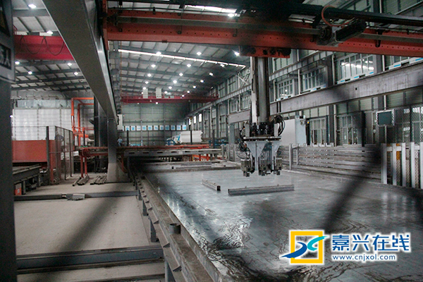 一進(jìn)生產(chǎn)車間,記者便看到了一只顯眼的“機(jī)械手”。“這是我們裝配式混凝土結(jié)構(gòu)體系產(chǎn)品生產(chǎn)線作業(yè)的第一步,即機(jī)械制模。房屋設(shè)計(jì)圖通過數(shù)據(jù)傳輸?shù)街骺仉娔X上,機(jī)械手便會(huì)自動(dòng)而精確地在臺(tái)模上畫線、制模,而且是零誤差。構(gòu)件運(yùn)至工地后由機(jī)械手一一吊裝、拼接、加固,就能組合成一間間房、一層層樓。”寶業(yè)集團(tuán)總經(jīng)理龐巍祥告訴記者。