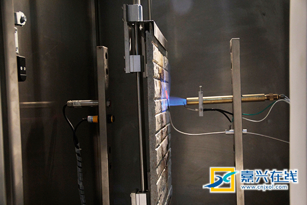 投入使用前,寶業(yè)集團(tuán)對(duì)每一種建筑用材、每一個(gè)建筑單位都要經(jīng)過一系列嚴(yán)格都安全檢測(cè)。這塊用農(nóng)作物秸稈+無機(jī)材料做成的室外幕墻材料,薄薄一片瓷磚厚,就算正面遇到700℃甚至更高的高溫,背面只有26℃左右。
