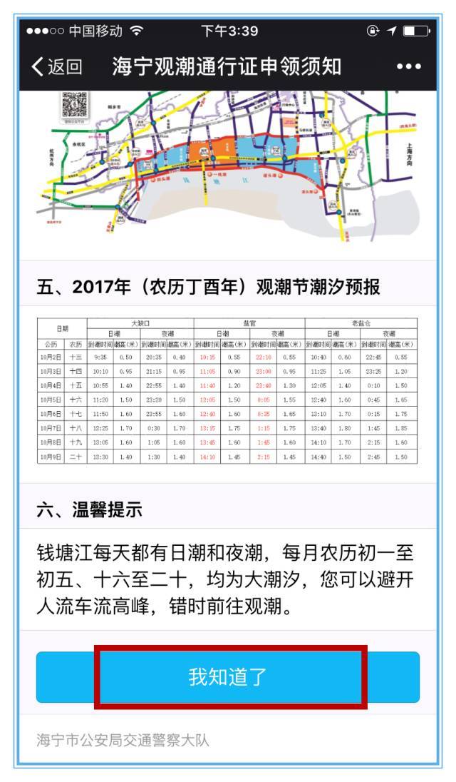 前方高能!\u00A010月4日至10月8日(農(nóng)歷八月十五至八月十九),海寧101省道、桐九線、騎荊線合圍區(qū)域,觀潮車輛(大型客車除外)一律需要憑通行證限量進(jìn)入了!您可在101省道郭鹽線路口、101省道桃翁線路口、G92杭州灣環(huán)線高速鹽官出口、桐九線潮涌路口、騎荊線潮涌路口及騎荊線翁金線路口現(xiàn)場申領(lǐng)通行證。當(dāng)日通行證發(fā)放完畢后,禁止車輛再進(jìn)入景區(qū)。