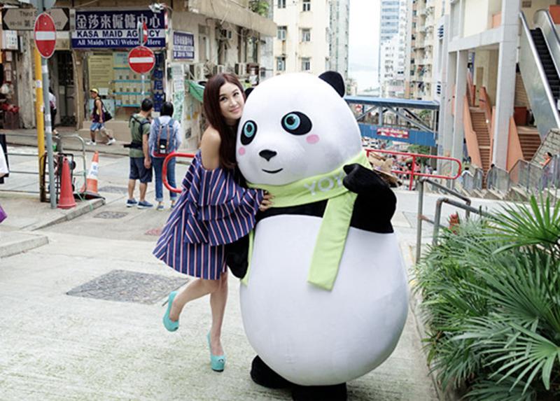 除了與明星探秘香港,“YOYO”憨態(tài)可掬的模樣在港島圈了不少“熊貓粉”。比如,在餐廳當(dāng)服務(wù)員為男神們上餐;在洪記大排檔索要抱抱被無情忽視;去定制成衣店被嫌棄腰圍過粗;在街頭撩可愛妹仔……在香港街頭,YOYO已經(jīng)成為與明星肩并肩的人氣偶像!