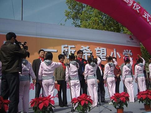 多處斷裂的房屋,嚴(yán)重脫落的墻壁,似乎隨時(shí)都會(huì)倒塌的教室……這樣的景象讓人記憶深刻,但更觸動(dòng)我們的是孩子們興奮的笑臉和眼中的希望。09年4月28日,湖北省襄樊市房縣紅塔鄉(xiāng)紅旗招展、鑼鼓齊鳴,房縣紅塔鄉(xiāng)謝灣海爾希望小學(xué)奠基儀式正在這里隆重舉行,這標(biāo)志著海爾“一枚金牌,一所希望小學(xué)”計(jì)劃在湖北的落實(shí)工作進(jìn)入倒計(jì)時(shí)。湖北省青基會(huì)秘書長(zhǎng)謝群、房縣縣委書記張歌鶯、縣長(zhǎng)沈明云、副縣委書記袁新云等領(lǐng)導(dǎo),及海爾相關(guān)領(lǐng)導(dǎo)蒞臨奠基儀式,與謝灣海爾希望小學(xué)的師生們共同迎接希望的到來(lái)。