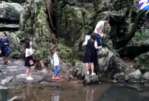 有些孩子看見(jiàn)景區(qū)有水潭,比較興奮就喜歡下去玩一下。但是這巖石潮濕又長(zhǎng)有青苔,小朋友不注意就容易打滑,所以各位家長(zhǎng)還是要看管好。