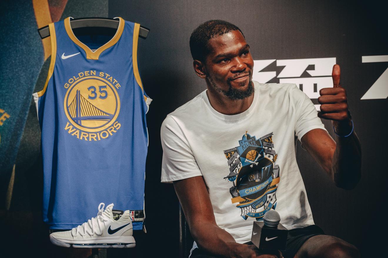 從2017-18賽季開始,耐克正式成為NBA官方場上運動服裝供應商,借著此次NBA中國賽的機會,杜蘭特也向球迷們展示了全新的Nike\u00A0NBA\u00A0Connected\u00A0Jersey。