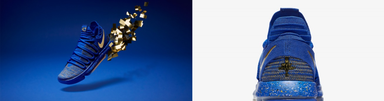 2007年5月,杜蘭特正式加入耐克大家庭并于2008年就擁有了他的第一雙簽名球鞋。十年間,杜蘭特以及他的簽名鞋系列都不斷取得了更出色的表現。在耐克淮海品牌體驗店,杜蘭特還展示了幾款全新配色的KD10戰靴。KD10\u00A0Numbers是首款印有球隊標志的耐克籃球鞋,該名字源于勇士隊的口號:眾志成城(strength\u00A0in\u00A0numbers),KD10\u00A0Celebration采用勇士隊傳統的藍與金配色,搭配特別的細節設計,致敬冠軍及MVP的榮耀。隨著杜蘭特的再次到訪,兩款球鞋均已開始發售。