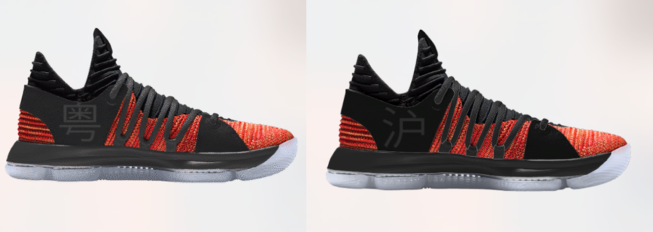 2017-18賽季NBA季前賽在深圳和上海開打,由杜蘭特領銜的勇士對戰森林狼,NIKEiD產品定制服務也于10月5日上線中國特別版本的KD10來迎接這個盛會。鞋身用紅金多色面料來營造中國氣氛,金色的swoosh代表衛冕的決心,更有趣的是,鞋身內側可以添加中文字\u00A0“粵”\u00A0和\u00A0“滬”\u00A0――用賽事舉辦地的簡稱來紀念這一次特別的中國賽,顯得十分特別。