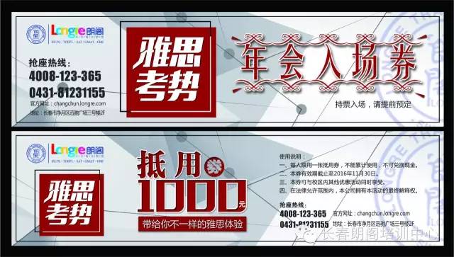 注意事項(xiàng):年會(huì)入場(chǎng)卷和抵用卷+紅包+朗閣雅思托福白皮書必須到長春朗閣領(lǐng)取,不負(fù)責(zé)郵寄!!!