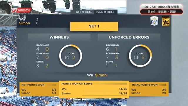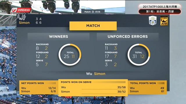 1小時(shí)22分鐘,西蒙完成了速勝。但拋開(kāi)結(jié)果來(lái)看,吳易昺的表現(xiàn)可圈可點(diǎn):上網(wǎng)14次,拿下12分,打得華麗積極;此外吳易昺的球速很快,平均時(shí)速達(dá)到122公里,美中不足的是,發(fā)球的精確性還有待雕琢。