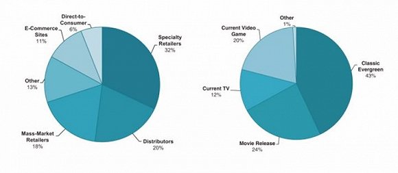 鑒于此,公司通過開發電影、電視劇、游戲、樂隊或體育運動有關的有趣的消費品,來讓粉絲表達他們的喜愛,簡而言之,就是做流行文化形象的衍生周邊系列。這些周邊包括手辦、毛絨玩偶、配飾、服裝和家居用品等。