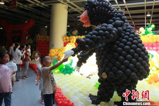 展館現(xiàn)場(chǎng),精致逼真的動(dòng)物氣球藝術(shù)品,讓眾多小朋友驚嘆連連。陳季玉 攝