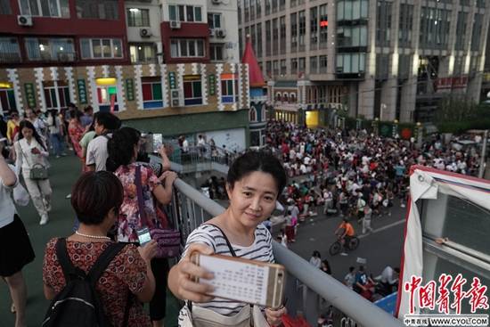 9月14日,天意市場外一處過街天橋上,一位市民與即將閉市的天意市場合影留念。